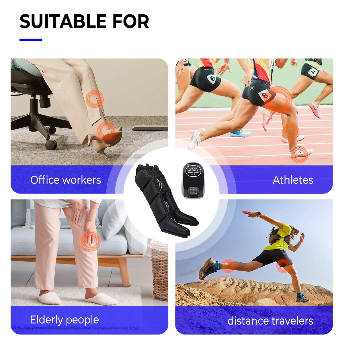 Perfect for athletes, office workers, seniors, or anyone with poor circulation, this massager delivers relaxation, recovery, and wellness in the comfort of your home.
